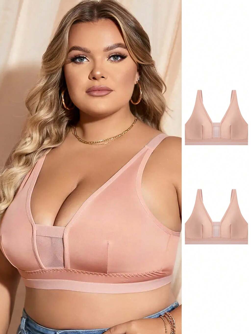 Plus Size Casual Apricot Mesh Insert Medium Stretch Bra