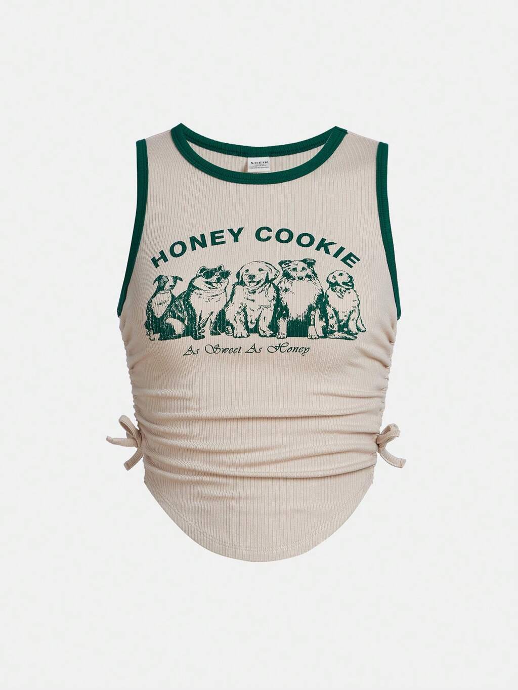 Teen Girl's Letter & Dog Printed Color Block Drawstring Pleated Casual Tank Top