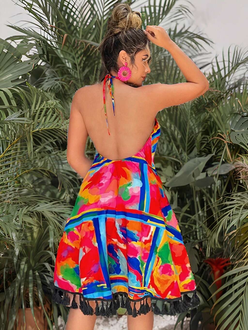 Backless Dress With Fringe Hem And Halter Neck Summer Vacation Holiday Beach BOHO Sexy Boho Birthday Bachelorette Party Women Outfit
