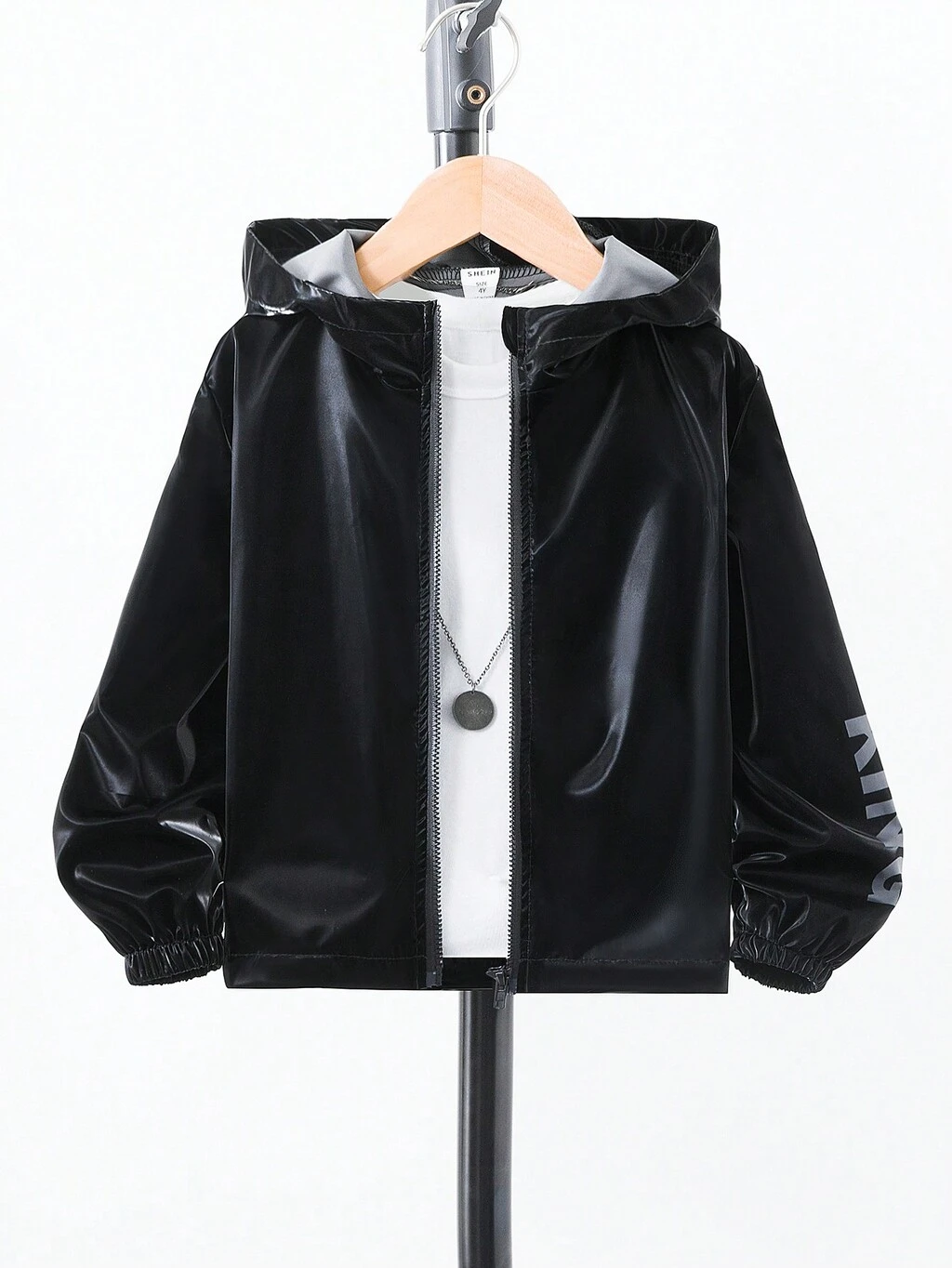 Young Boy Casual Loose Street Style Winter Jacket With Zipper And Hood, Versatile, For Autumn And Winter