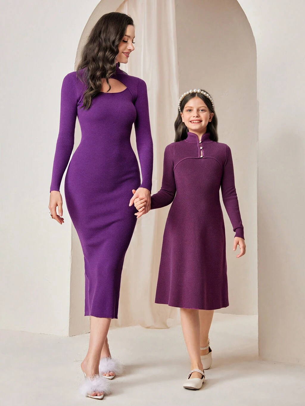 Tween Girls' Color-Contrast Collar Knitted Sweater Dress
