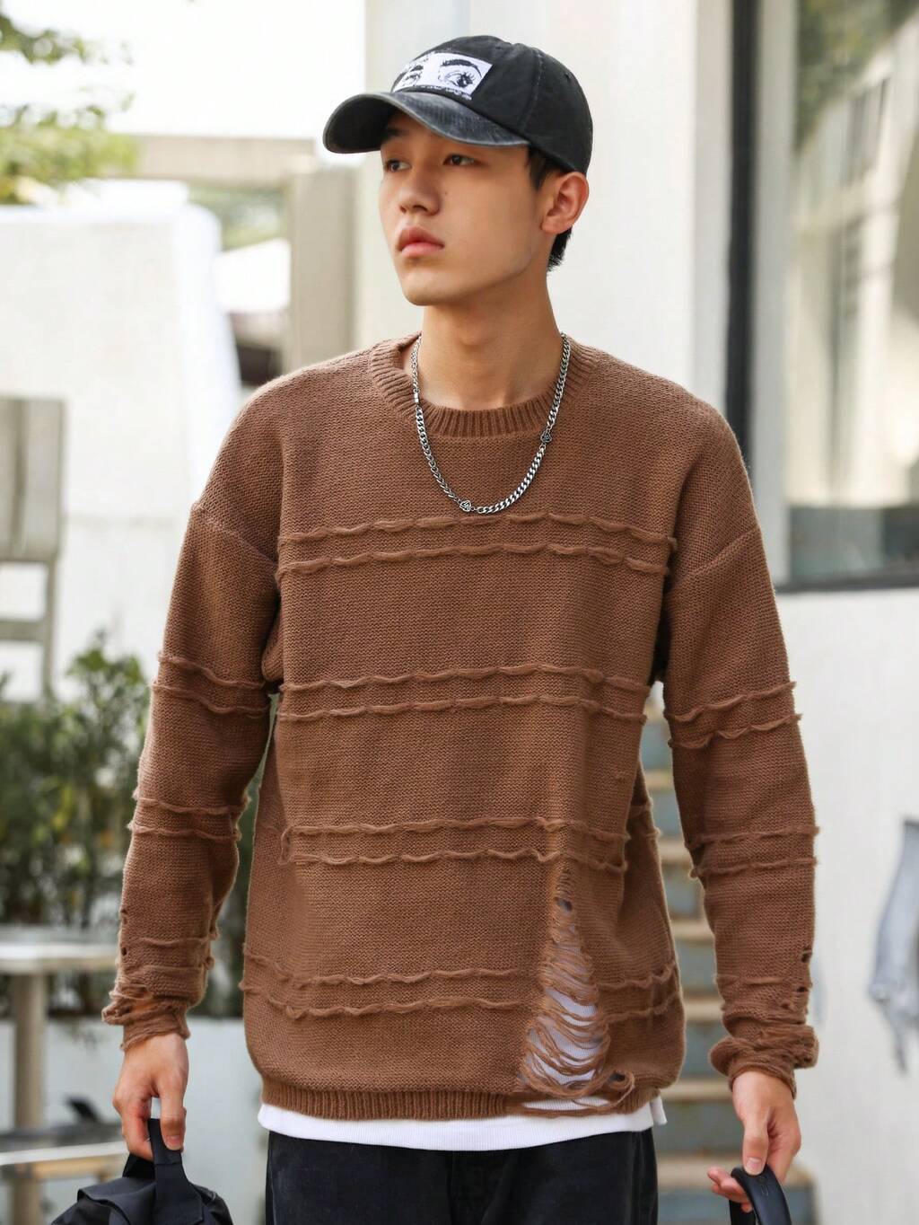 Men Ripped Drop Shoulder Sweater