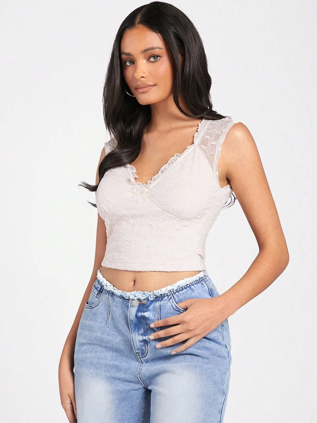 Women's Mesh Sheer Sweetheart Neckline Bow Knot Fitted Crop Top