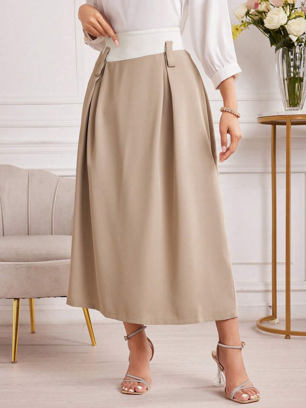 Women Versatile Apricot A-Line Skirt