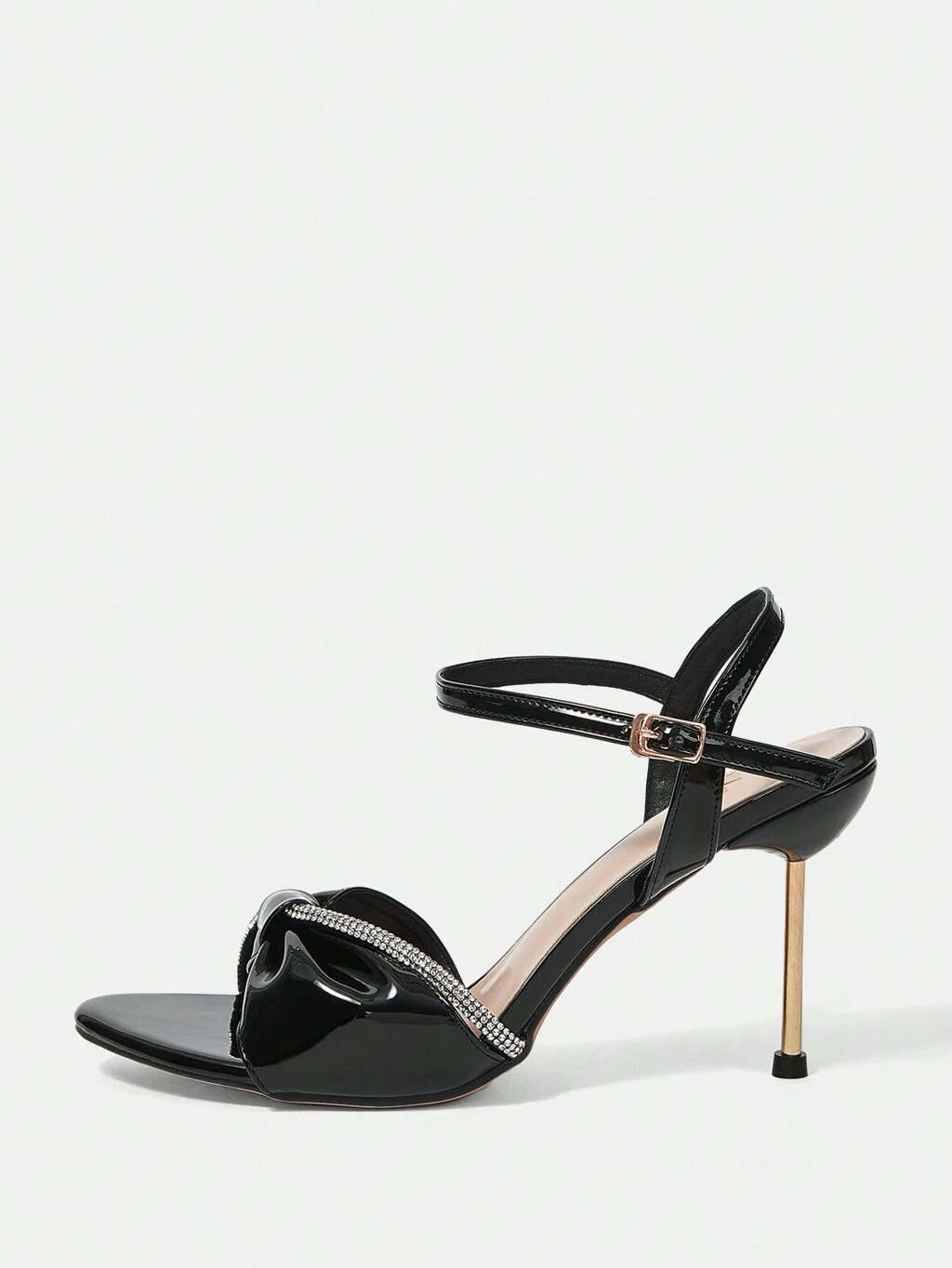 Women's Simple Pointed Toe High-Heeled Sandals With Thin Heels And Rhinestones