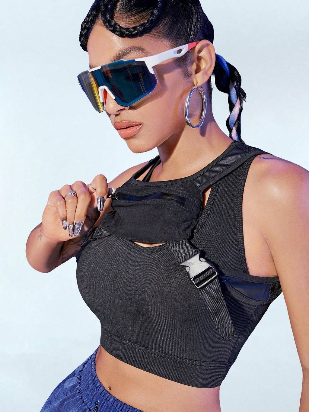 Women's 2pcs Sport Crop Top Set – Strappy With Adjustable Sliders, Breathable Fabric, And A Cute Front Pocket. Ribbed Tank Ideal For Running, Biking, HIIT, Cardio, CrossFit, Tennis, Or Golf-Offered In Cross-Back Or Backless Styles With Adjustable Straps And Scrunch Detailing. Medium Support Makes It Perfect For Yoga, Pilates, Office-To-Gym Transitions, Running, Boxing, And Daily Athleisure. Designed For Fall Workouts With Comfort, Flexibility, And Function, Featuring Mesh Cut-Outs F