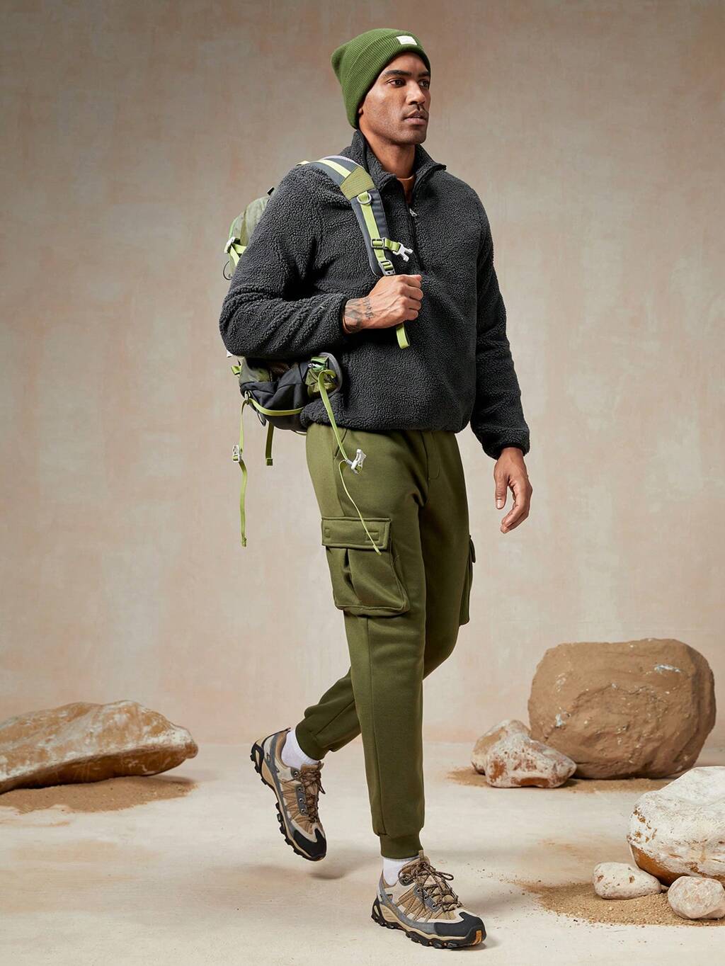 Men Half Zip Kangaroo Pocket Outdoor Fleece Pullover