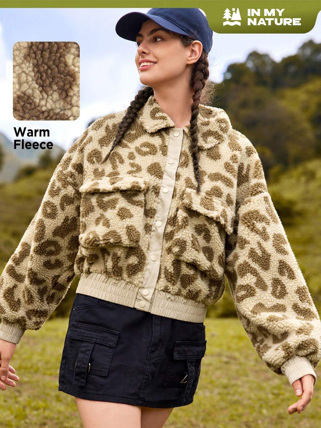 Leopard Print Drop Shoulder Flap Pocket Teddy Jacket