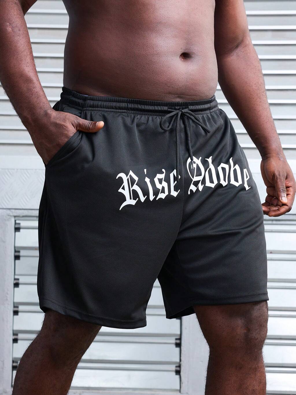 Men's Plus Size Slogan Print Casual Sport Shorts With Pockets