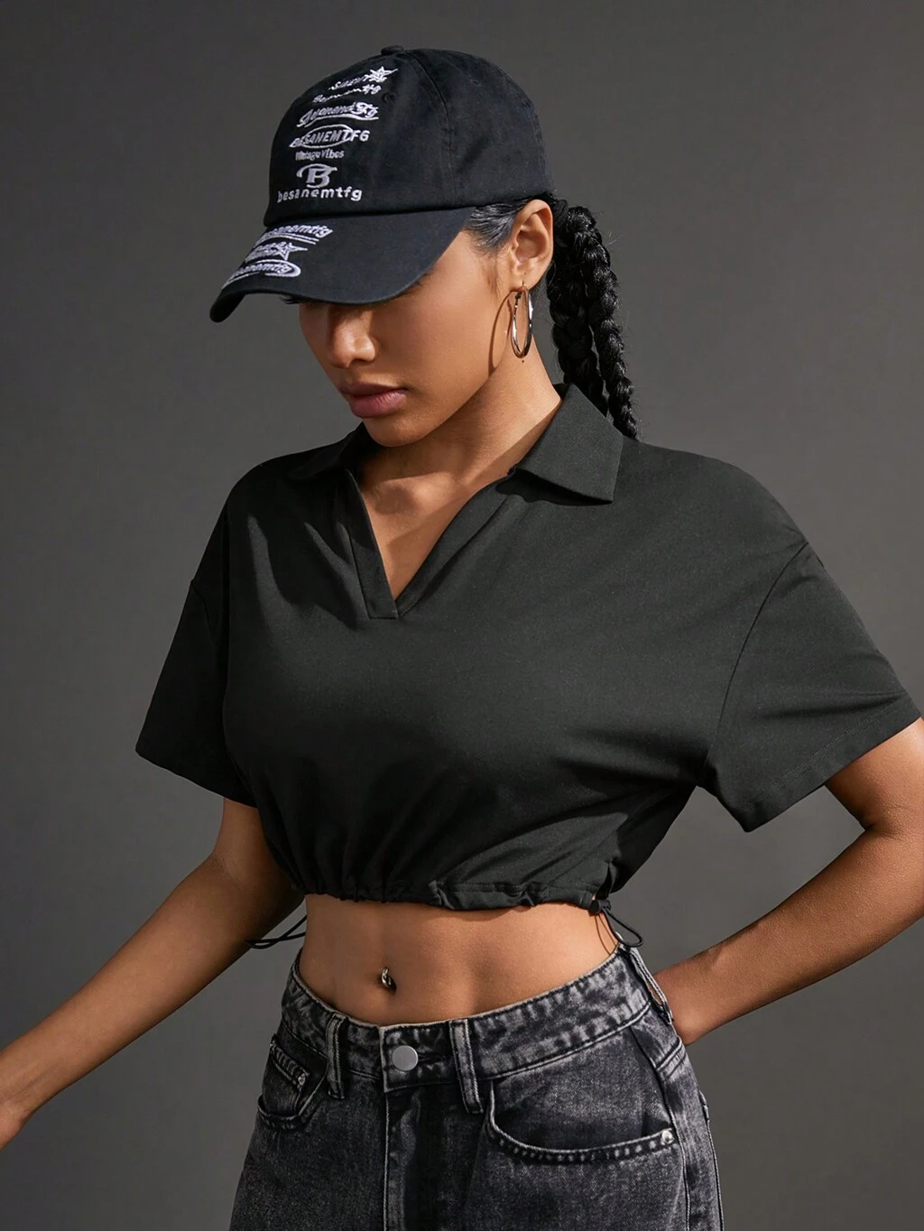 Women's Fashion Solid Color Short Loose Casual Sport T-Shirt With Elastic Waistband