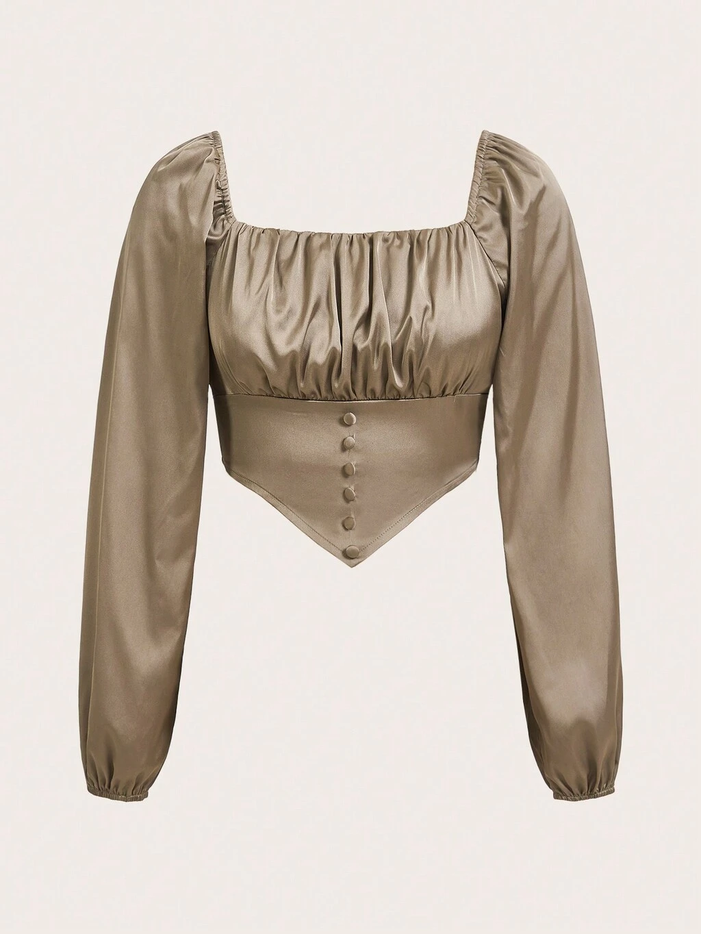 Rhinestone Detail Button Front Satin Tube Top