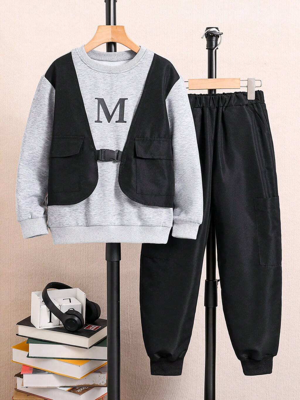 Tween Boy Letter Graphic Two Tone Flap Pocket 2 In 1 Pullover & Pants