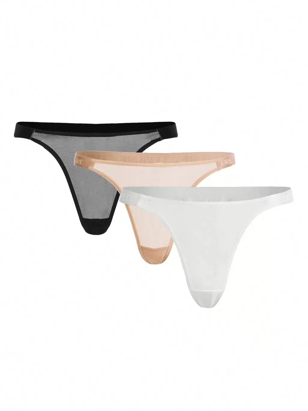 Breathable And Comfortable Mesh Contrast Thong ,3 Pcs