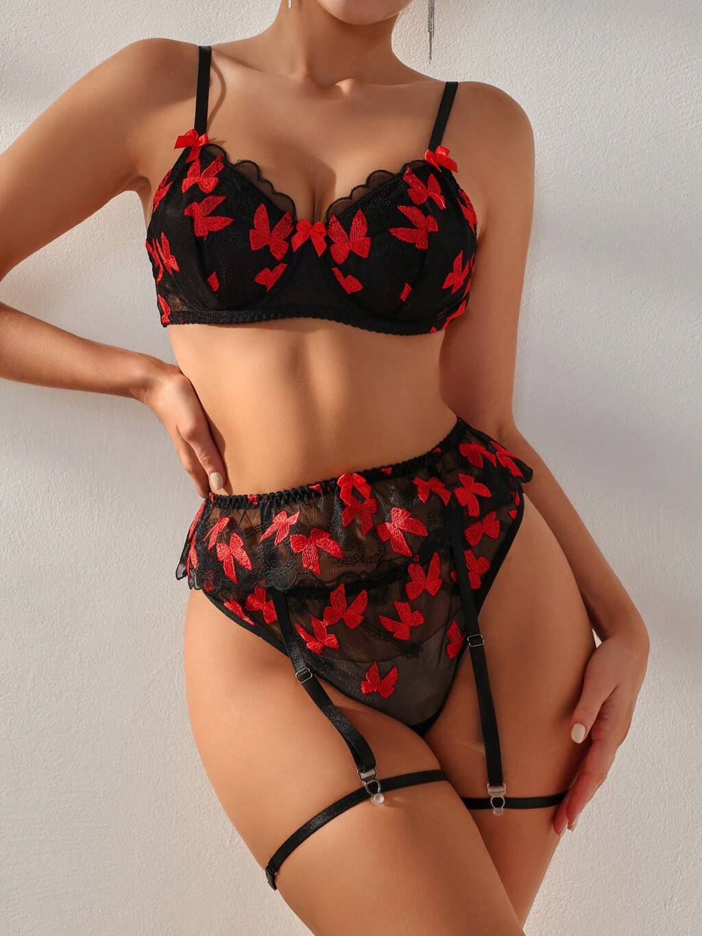 Ladies' Sexy Hollow Out 3d Embroidery Lingerie Set (Valentine'S Day Edition)