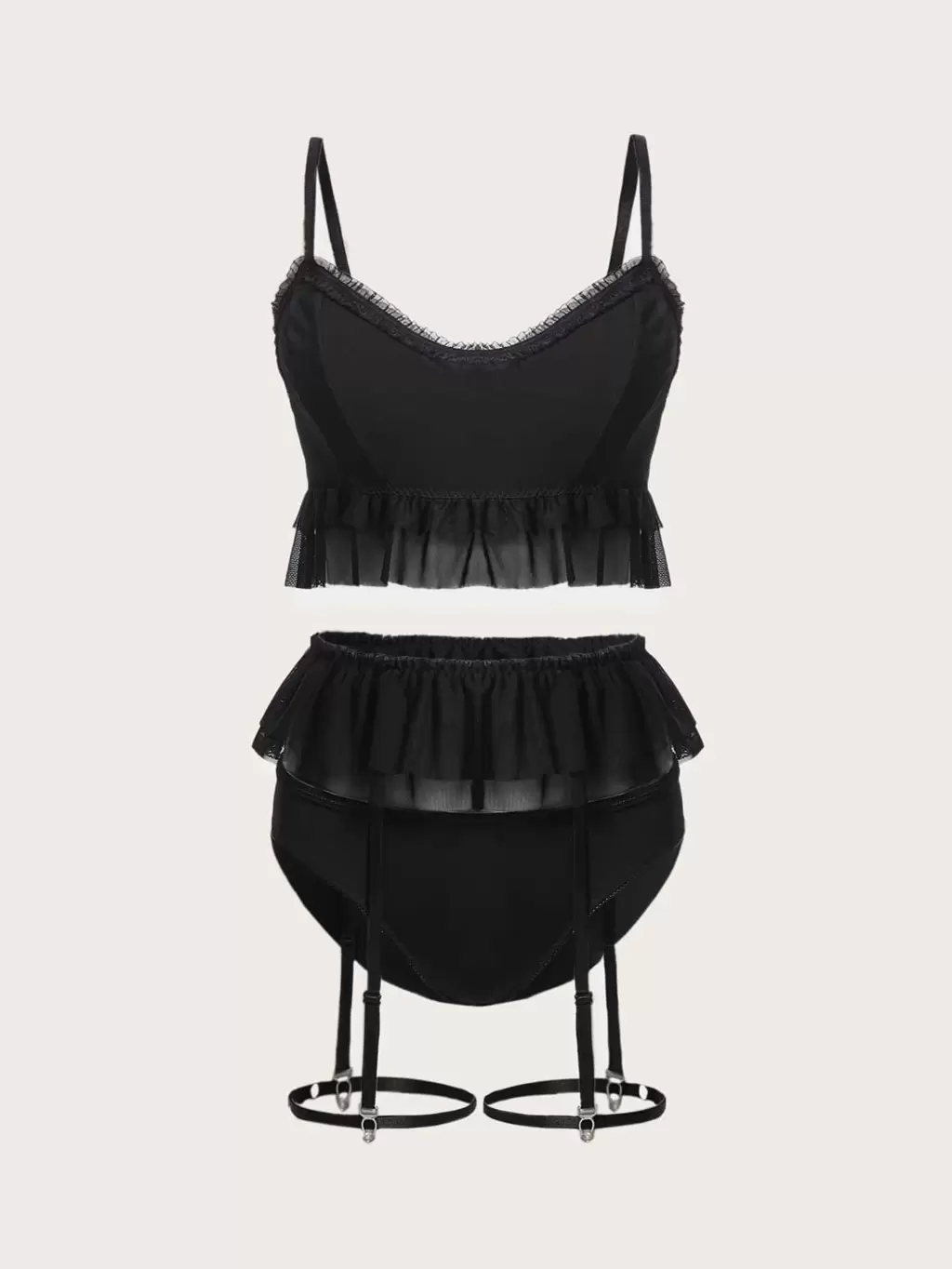 3pack Contrast Mesh Ruffle Hem Garter Lingerie Set