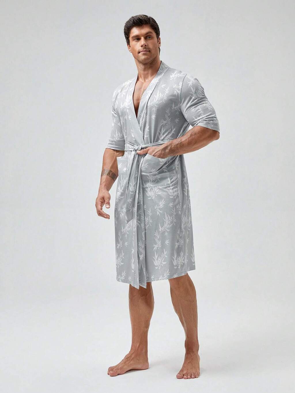 Men 1pc Satin Belted Sleep Robe