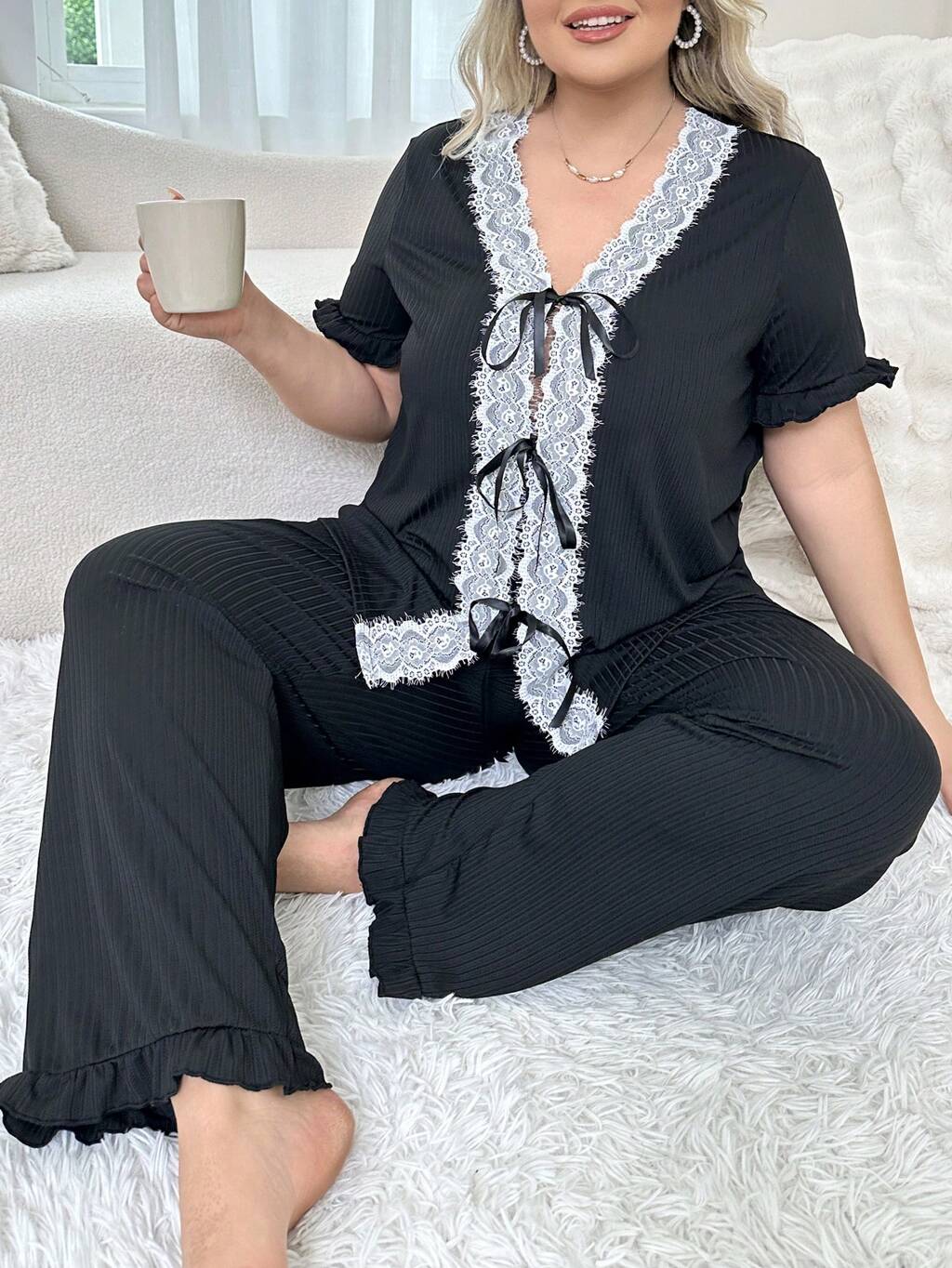 Knitted Plus Size Jacquard Pajama Set
