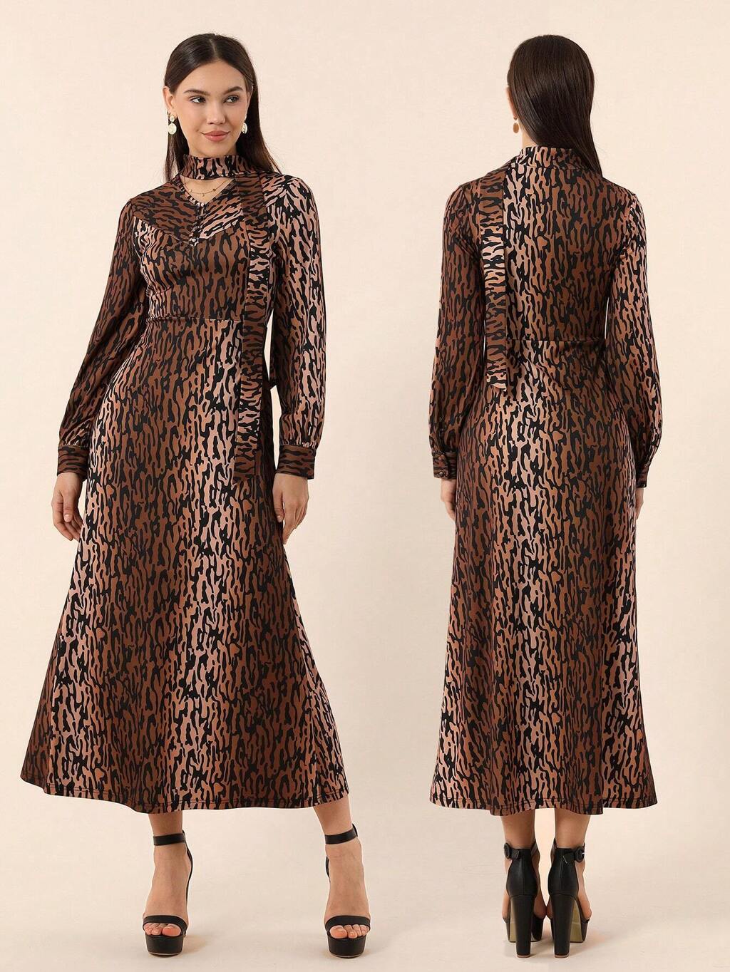 Full-Print Long Sleeve Dress