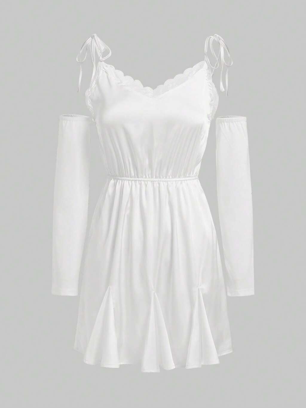 Tie Shoulder Lace Trim Cami Dress With Arm Sleeve Without Belt