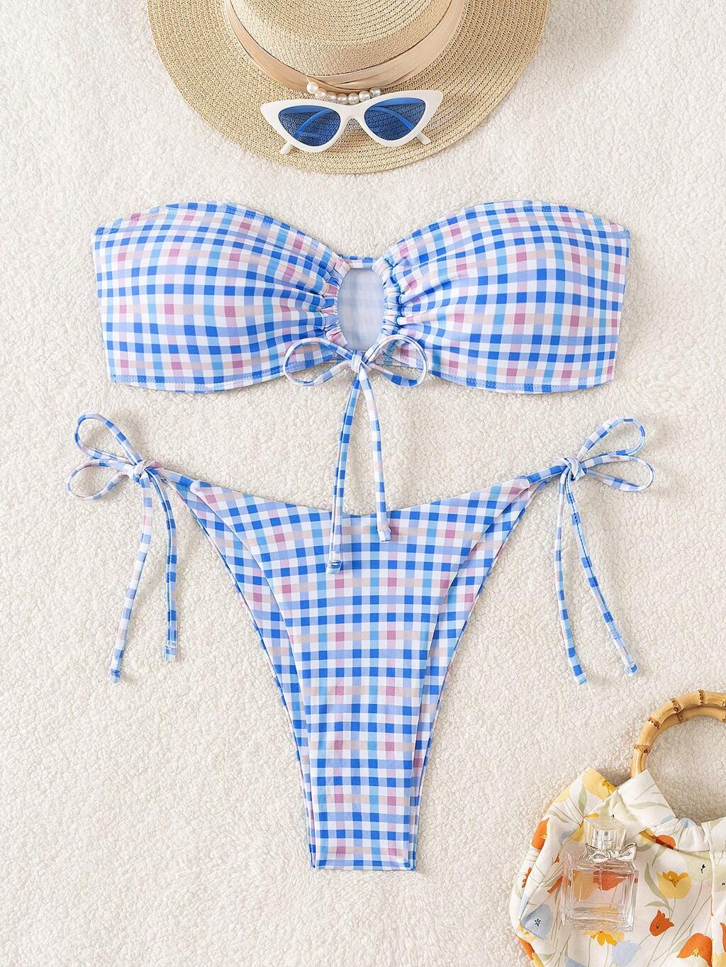 Women's Plaid Printed Casual Summer Strapless Camisole, Sleeveless