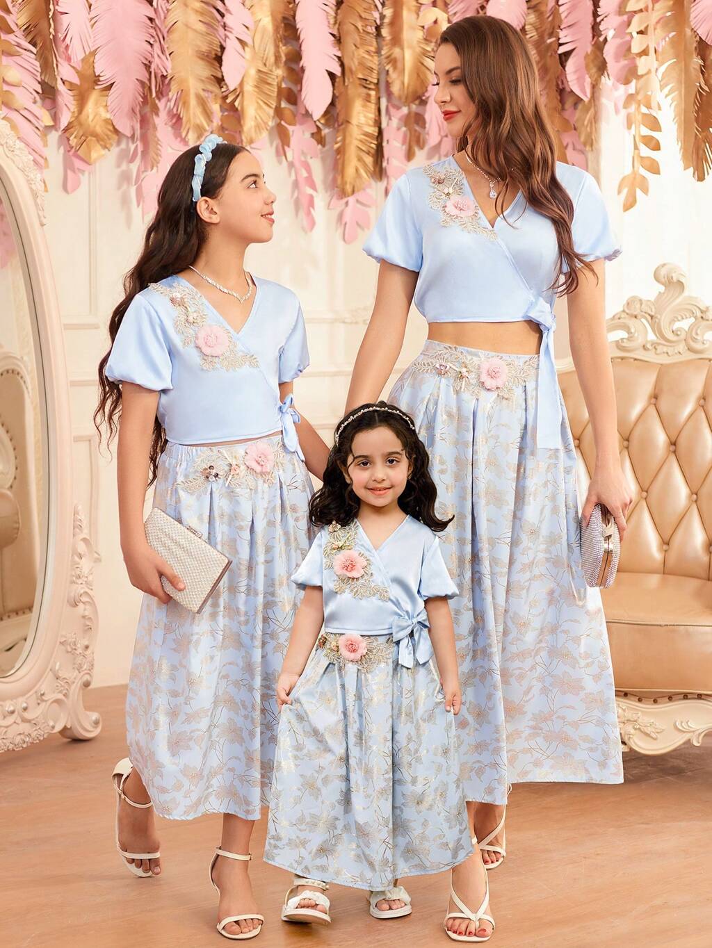 Women's Random Printed Top And Skirt Set