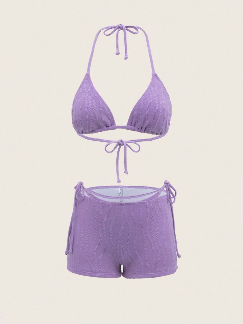 Summer Women'S Halter Neck Bikini Set With Bodycon Side Tie