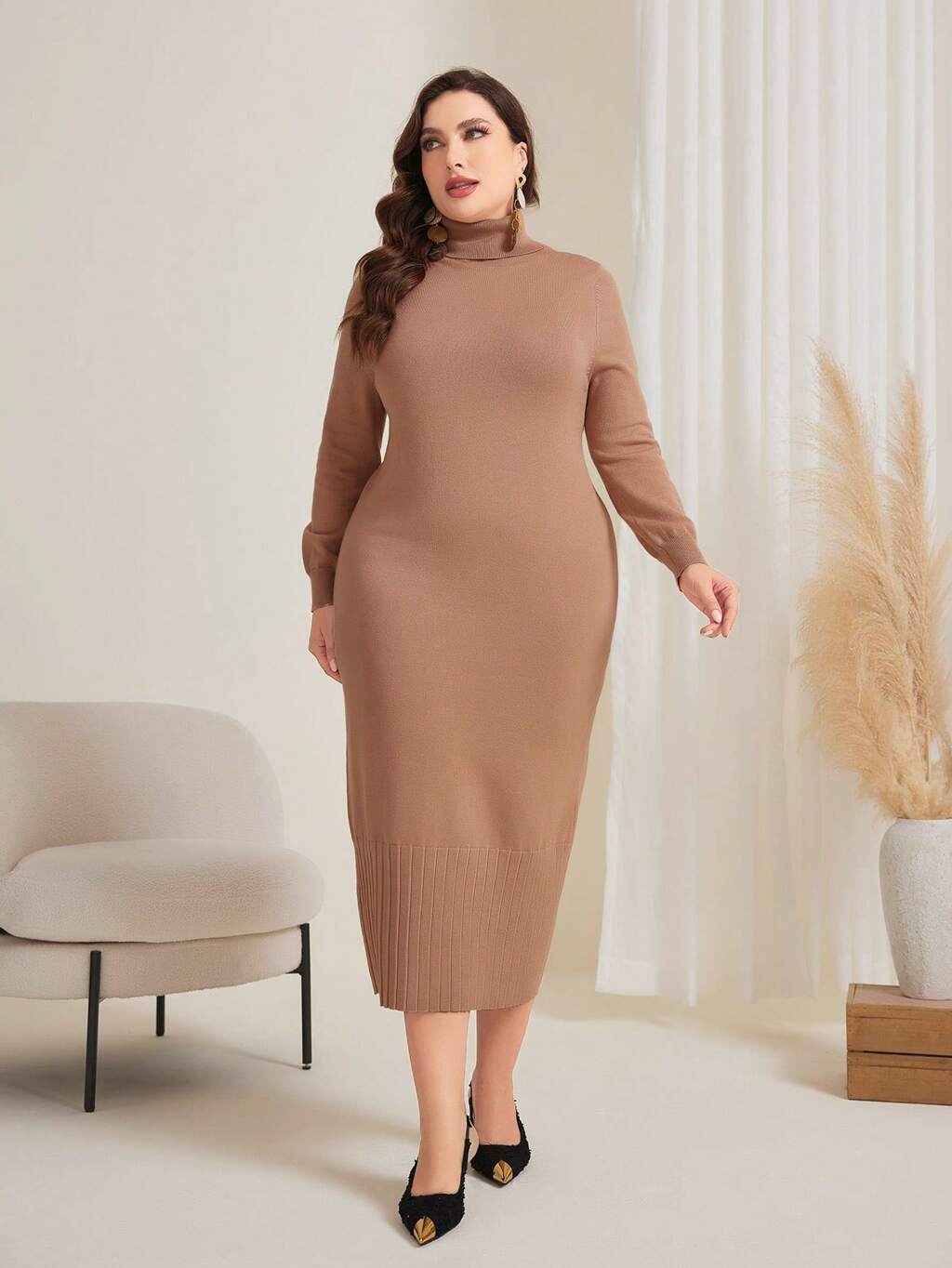 Women's Plus Size Off Shoulder Cable Knit Sweater Dress Fall Cloth For Women
