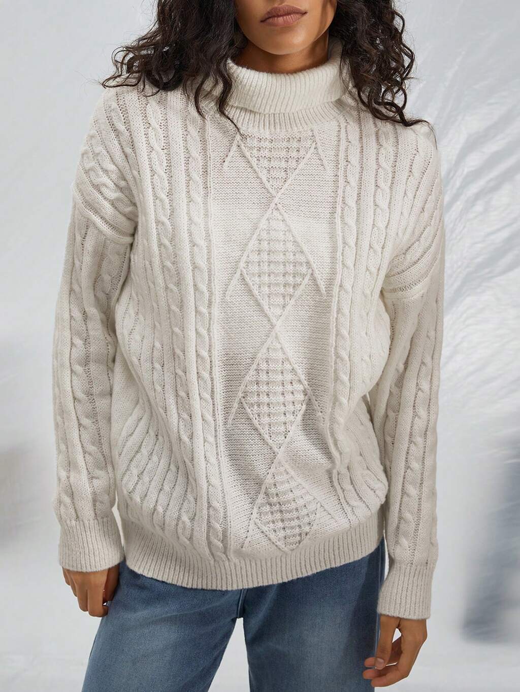 Turtleneck Cable Knit Drop Shoulder Sweater