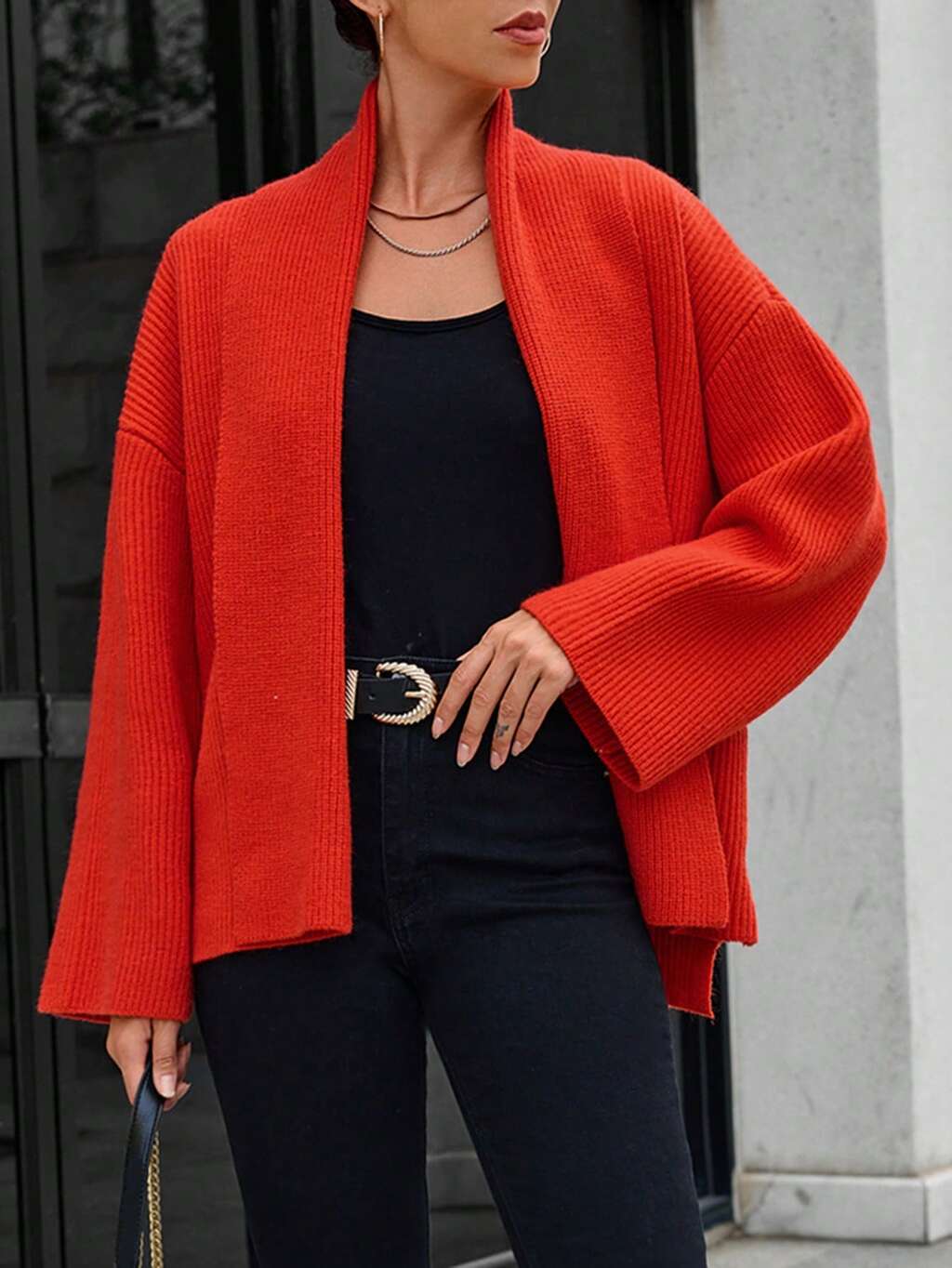 Waterfall Collar Drop Shoulder Belted Cardigan