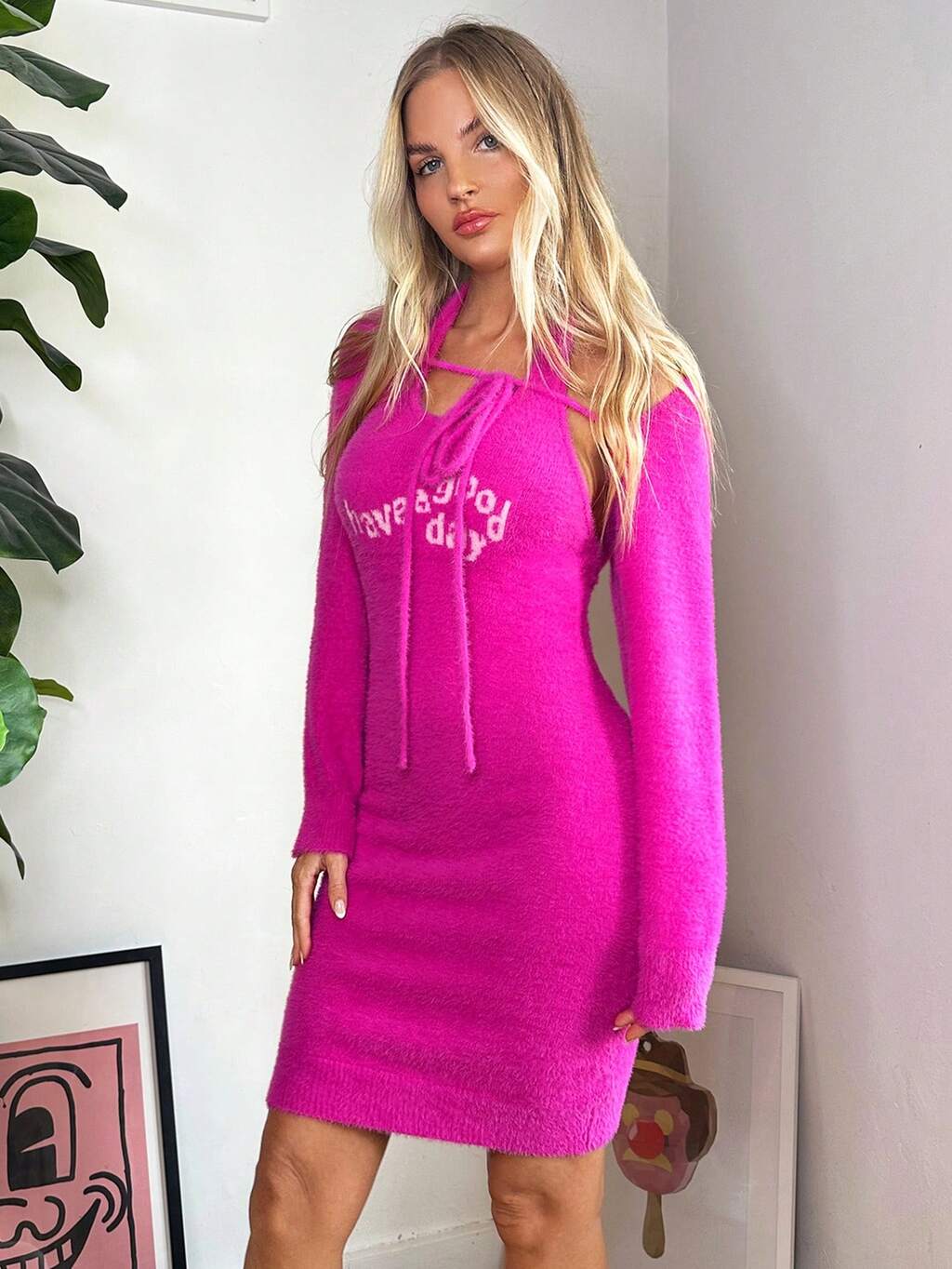 Tie Front Sweater & Letter Pattern Halter Knit Dress