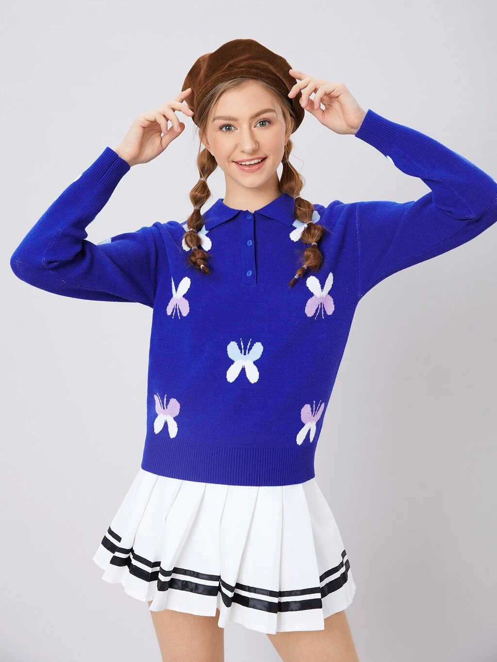 Butterfly Pattern Button Front Sweater