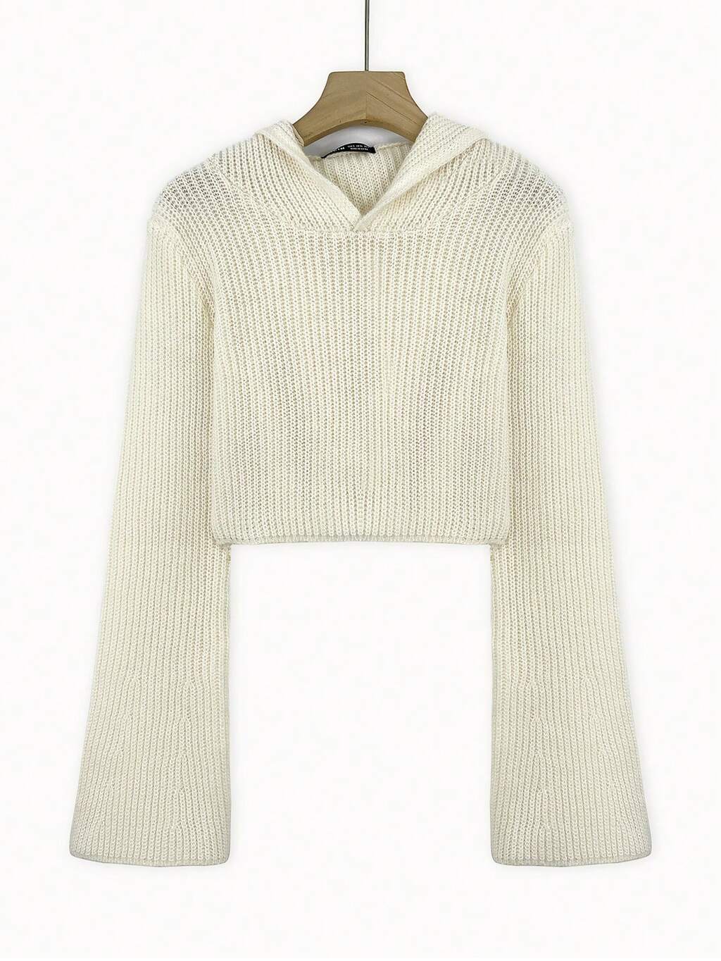 Solid Crop Hooded Knit Pullover Fall Winter Sweater