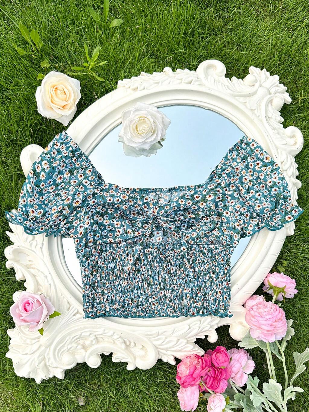 Holiday Style Square Neck Floral Print Ruched Backless Camisole