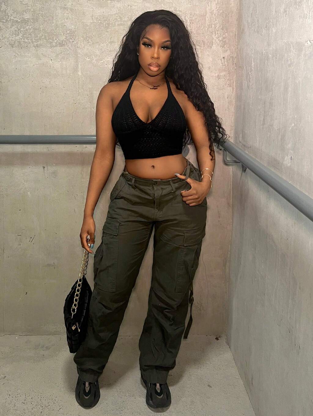 2024 Music Festival Summer Holiday Casual Women Knitted Halter Hollow Out V-Neck Top With Tie - C