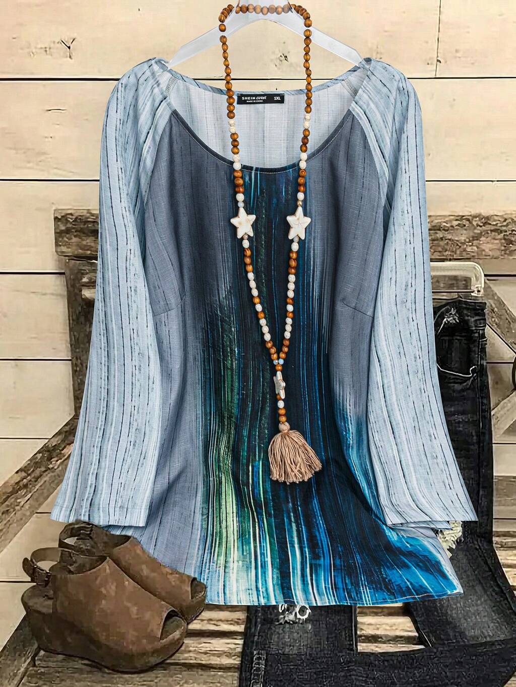 Plus Size Women's Casual Striped Round Neck Raglan Sleeve Long Sleeve Loose Shirt, Summer