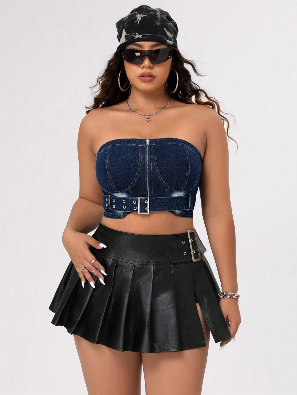 Plus Size Denim Bustier Top With Belted Waist