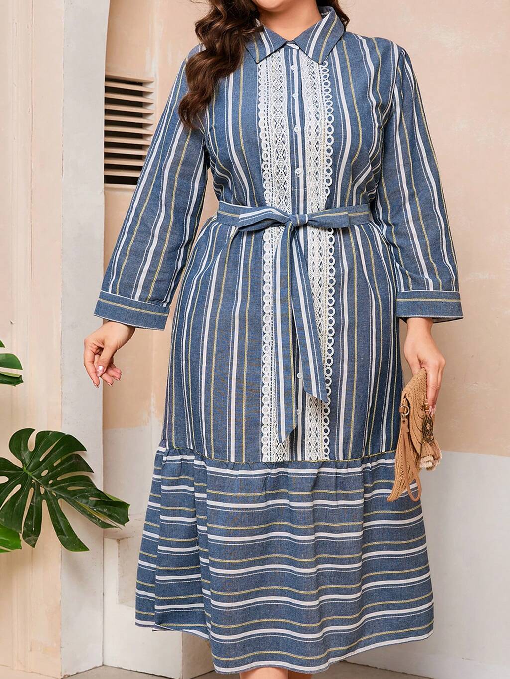 Plus Size V-Neck Casual Waistband Lace-Up Shirt With Water-Soluble Lace Panel, Summer
