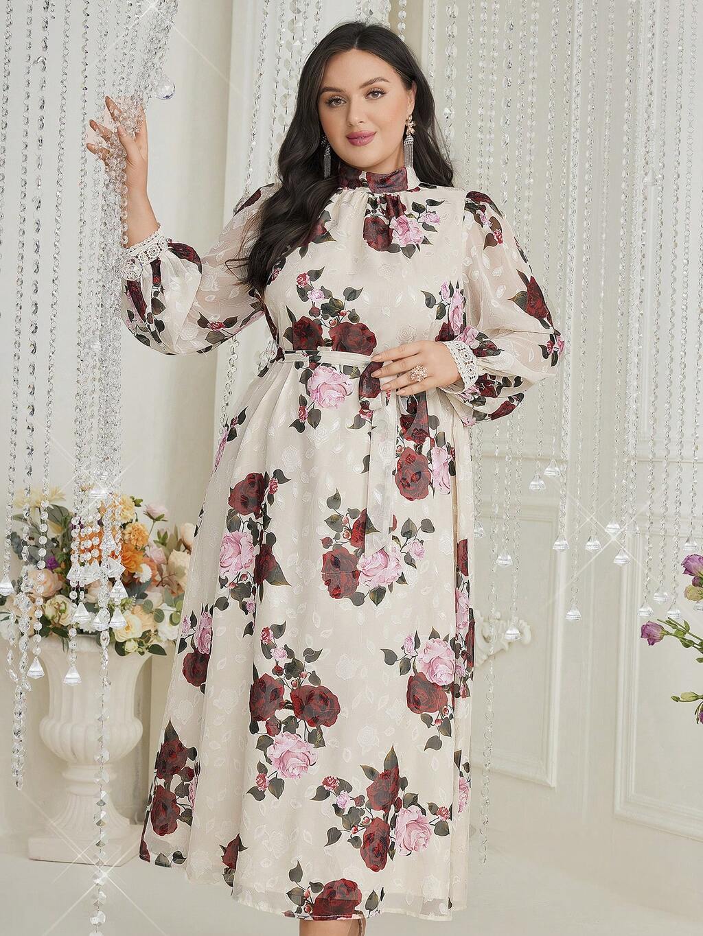 Women's Plus Size Flower Print Dress Long Evening Dresses