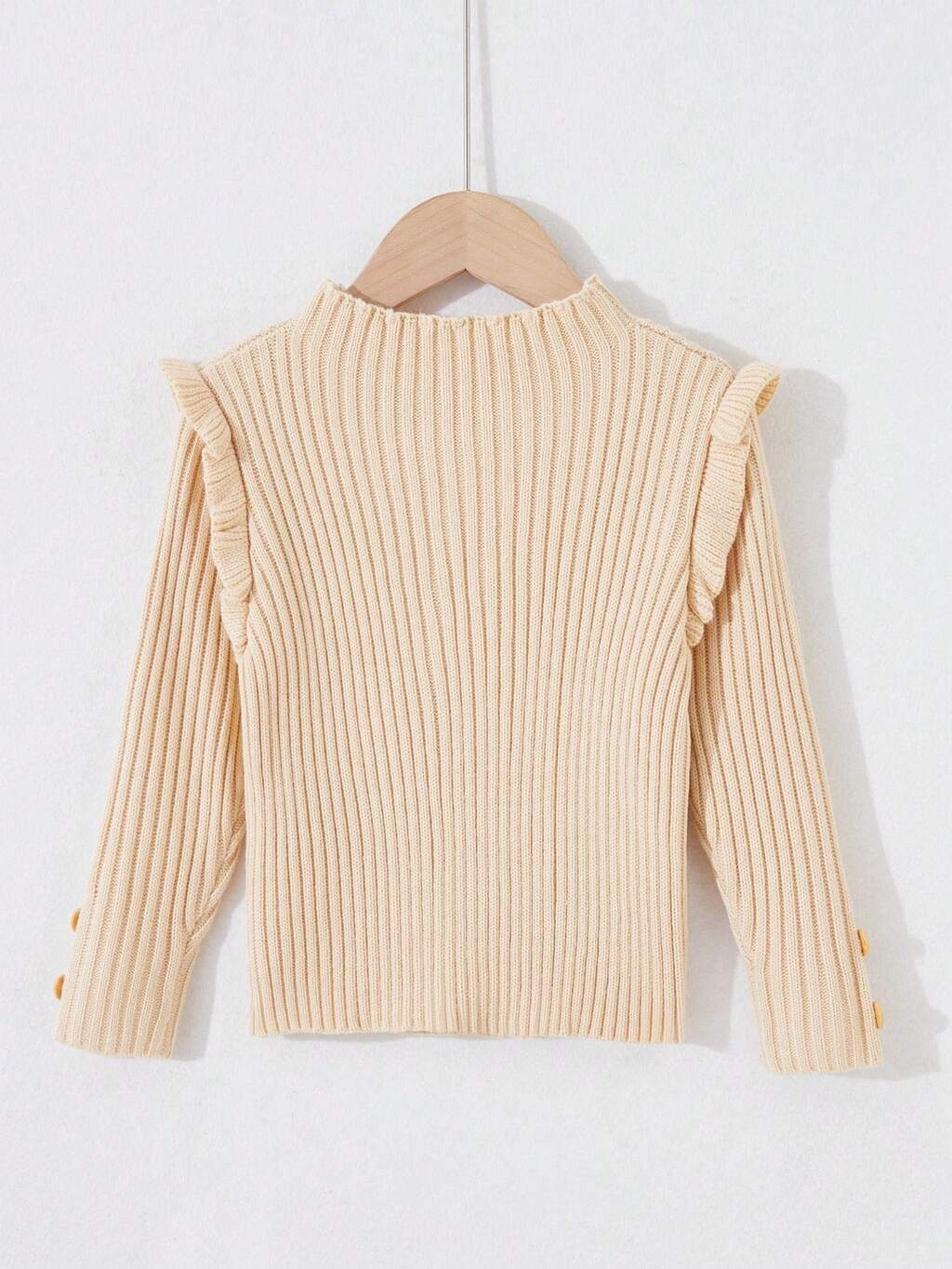 Young Girl Frill Trim Button Detail Ribbed Knit Sweater