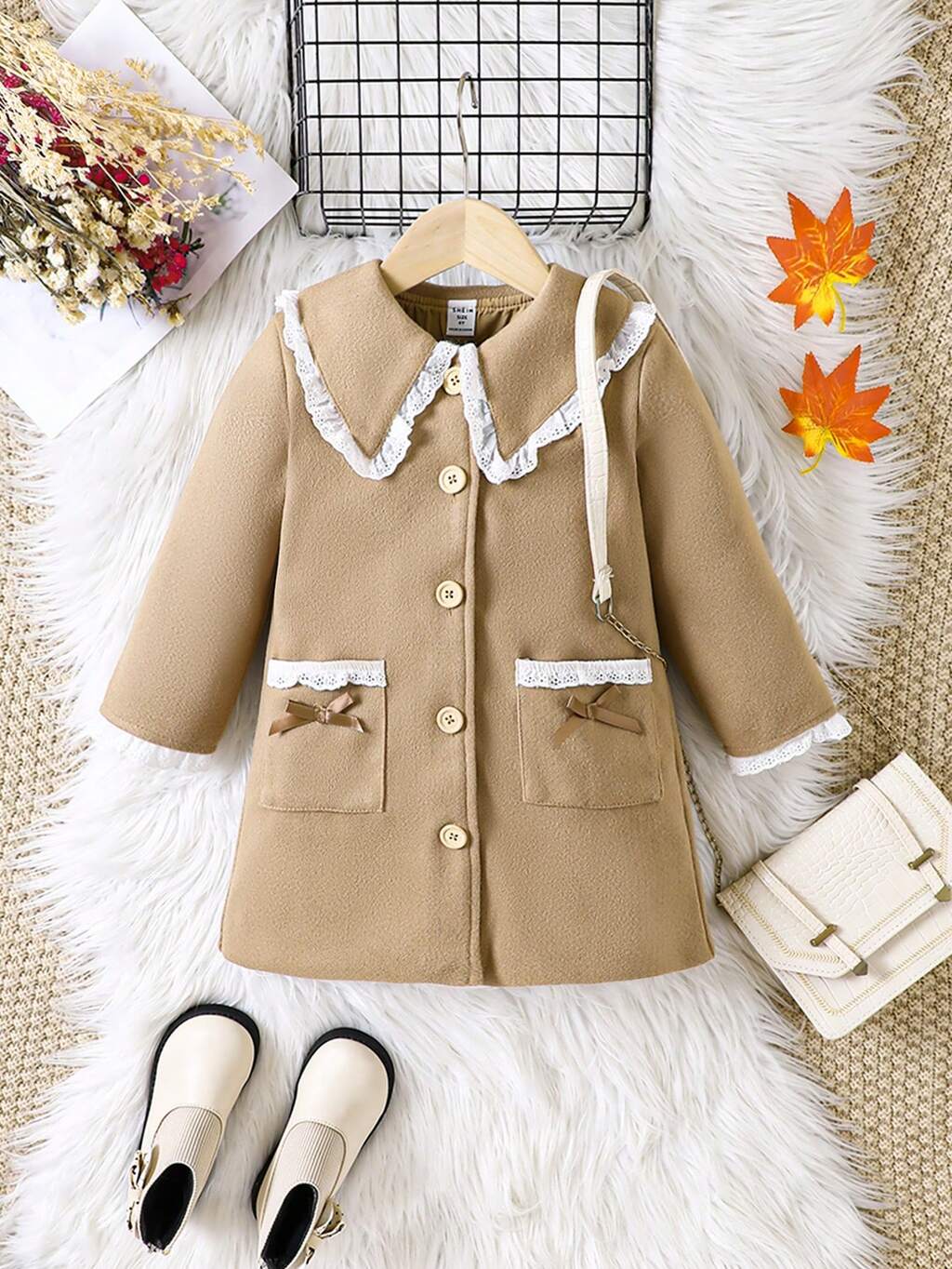 Young Girl Lapel Neck Double Breasted Overcoat