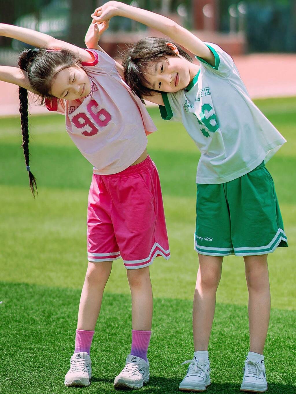 Annil Tween Girl Clothing Summer Versatile Casual Sports T-Shirt Shorts Letter Print Kids Suit 2-Piece Set Gray