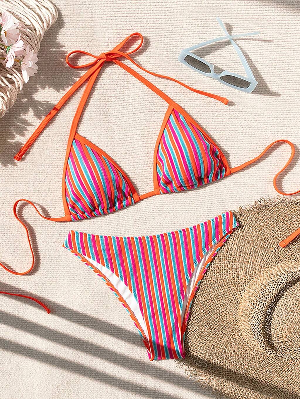 Women's Color-Block Striped Bikini Set Summer Beach