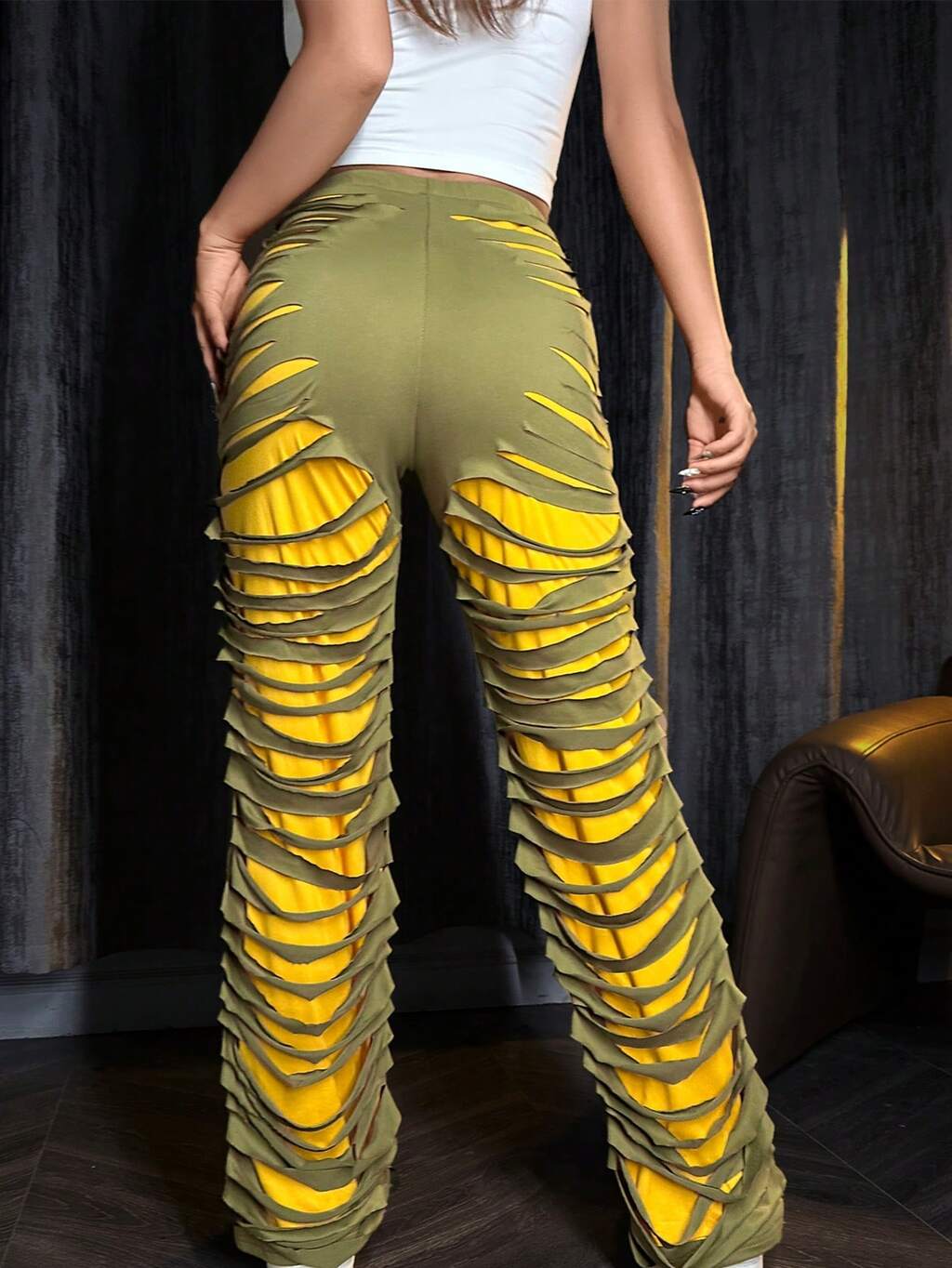 Elastic Waist Ripped Pants