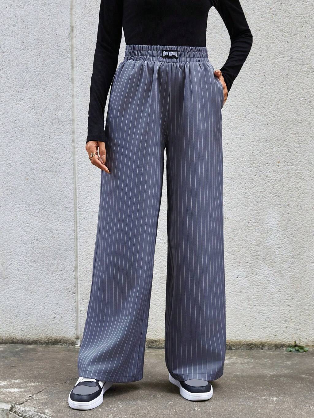 Striped Print Slant Pocket Wide Leg Pants