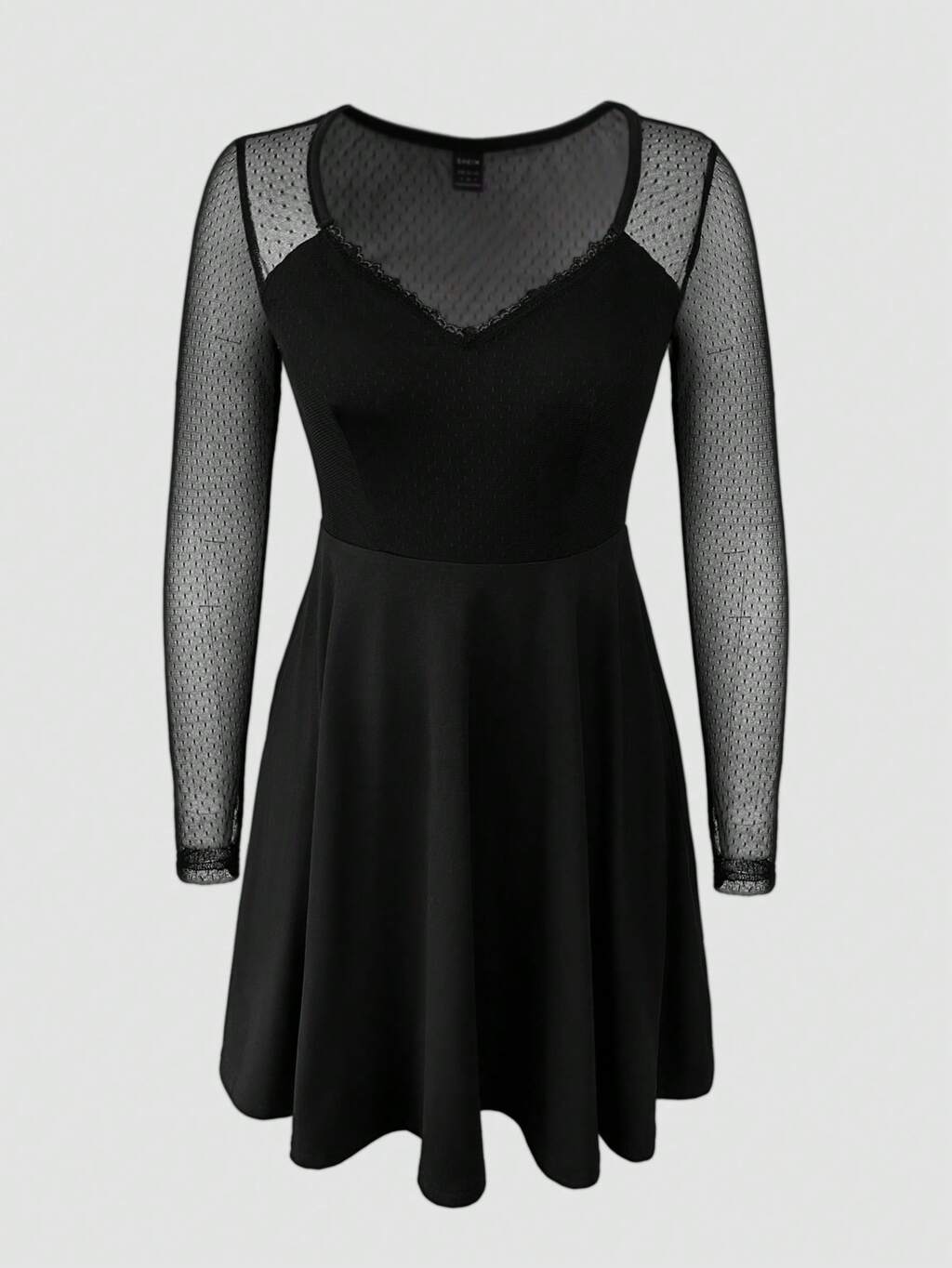 Women's Polka Dot Sheer Mesh V-Neck Sexy Patchwork Dress Fall Cloth For Women