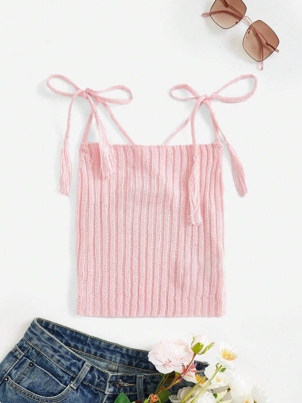 Women's Knitted Camisole Top With Front Tie Strap