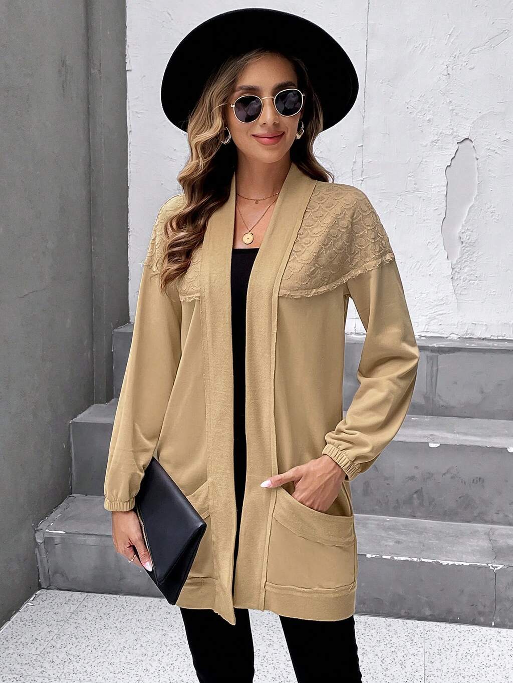Dual Pocket Open Front Coat Fall Cloth For Women