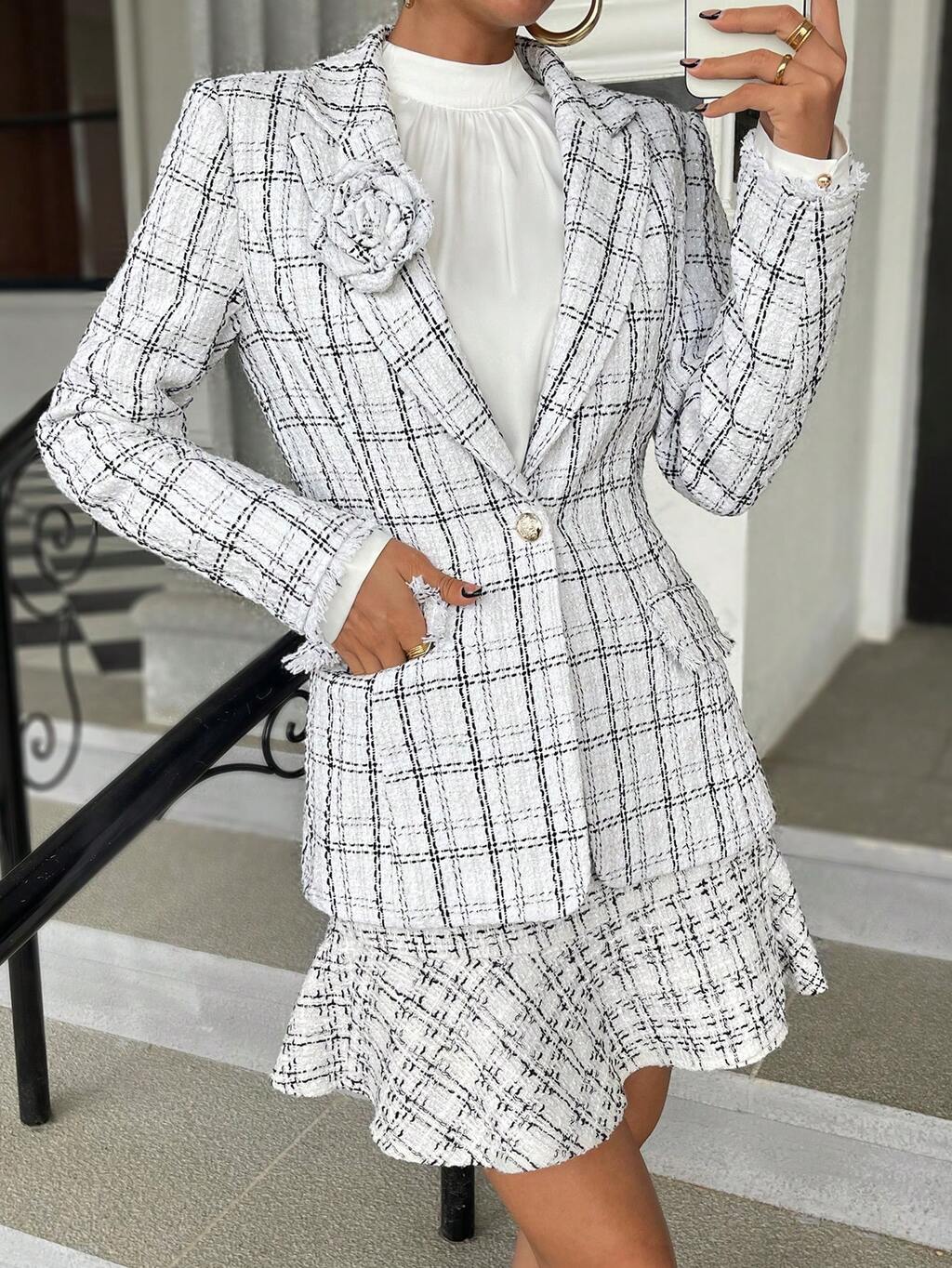 Lapel Neck Drop Shoulder Blazer & Skirt