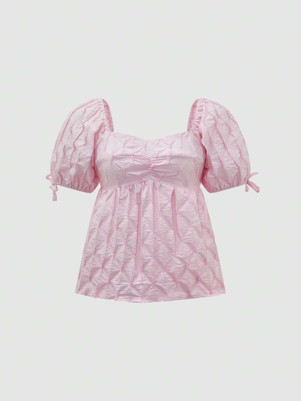 Solid Color Puff Sleeve Shirt With Texture