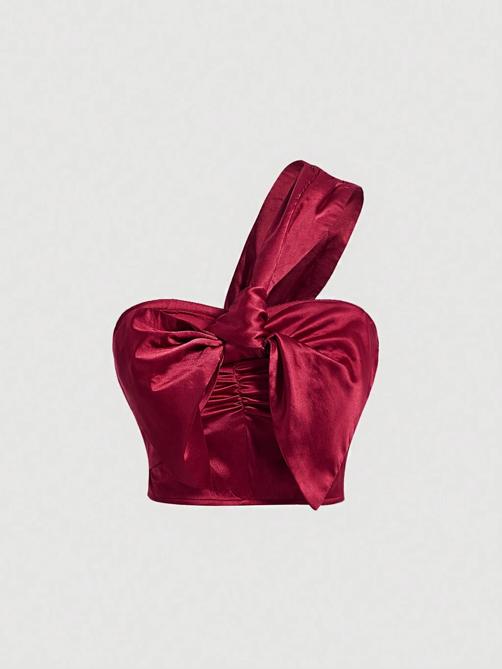 Satin Cap Sleeve Lace Up Back TopVacation Spring Summer Holiday Airport Casual Elegant